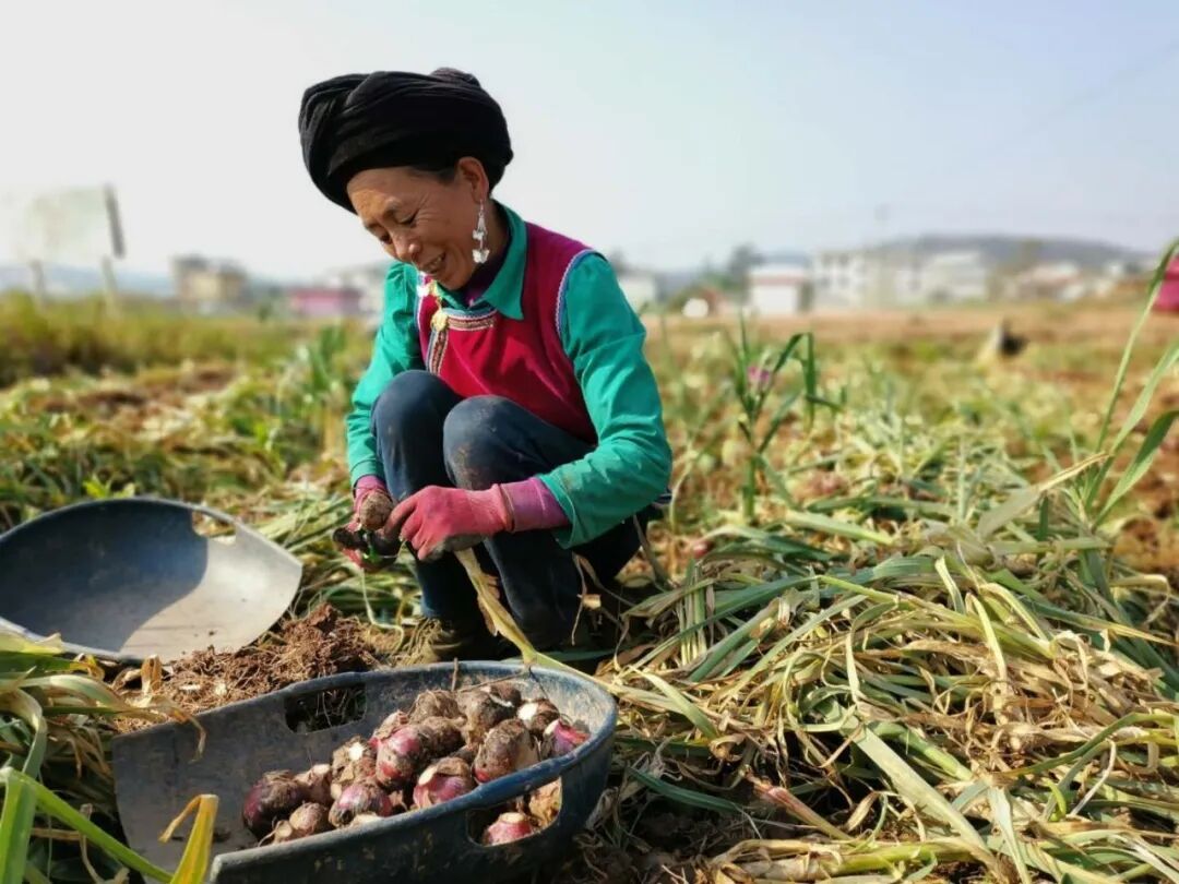 原来,紫蒜来自于云南省楚雄州牟定县共和镇的天山村,通过与嘉定对口帮扶的援建干部祥娃了解到,种植了1000多亩的紫皮大蒜,今年因疫情影响,大蒜的价格偏低,收购商也比较少,销售遇困,因此还有大量的蒜没有挖。