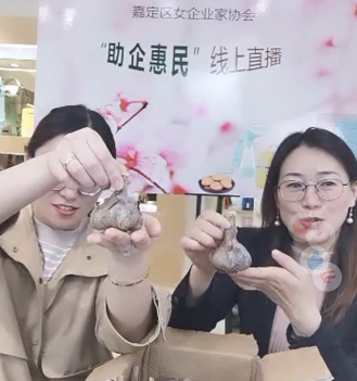 上周,在一场“助企惠民”的直播上,嘉定区女企业家协会的女企业家化身“主播”,为紫皮蒜带盐。