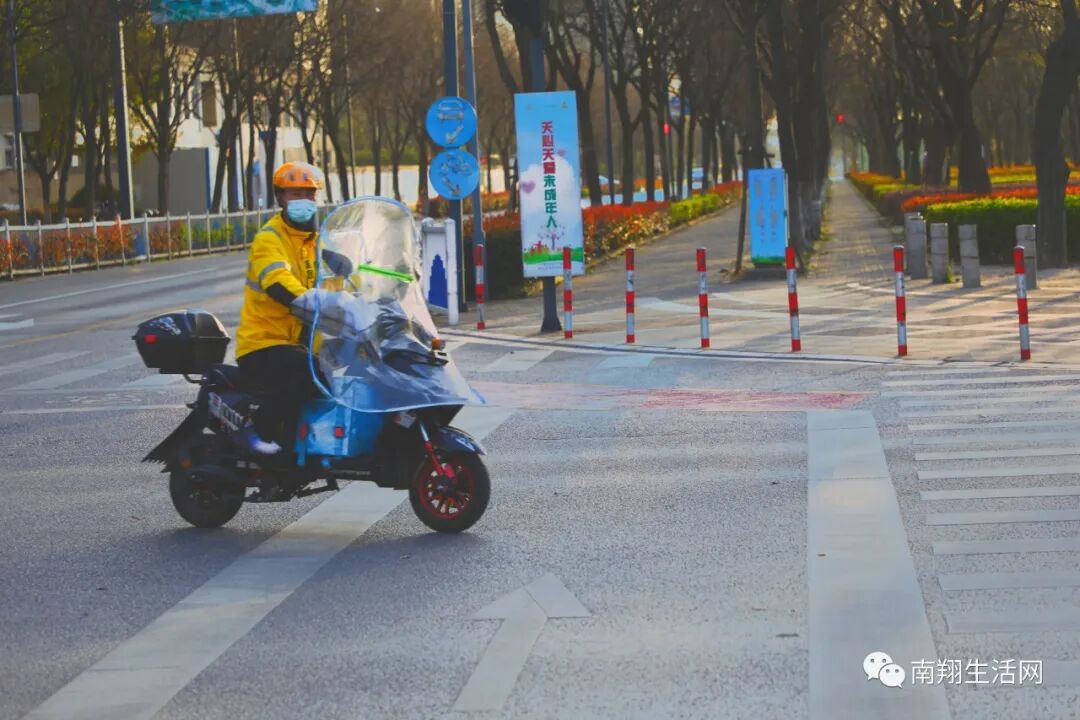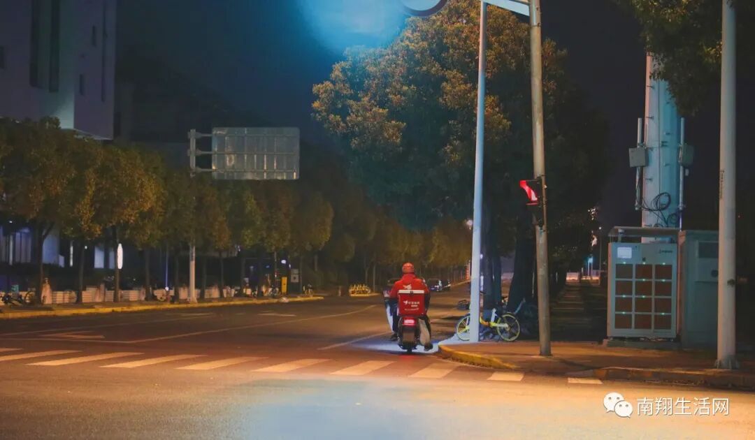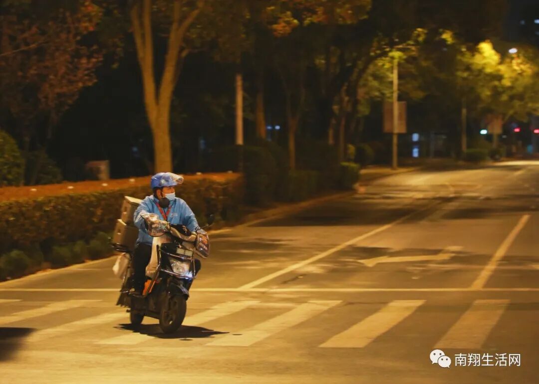 外卖骑手穿梭于梅园路和城中路,此刻,他是这个宁静小城的多少人的五脏庙里的期待啊!