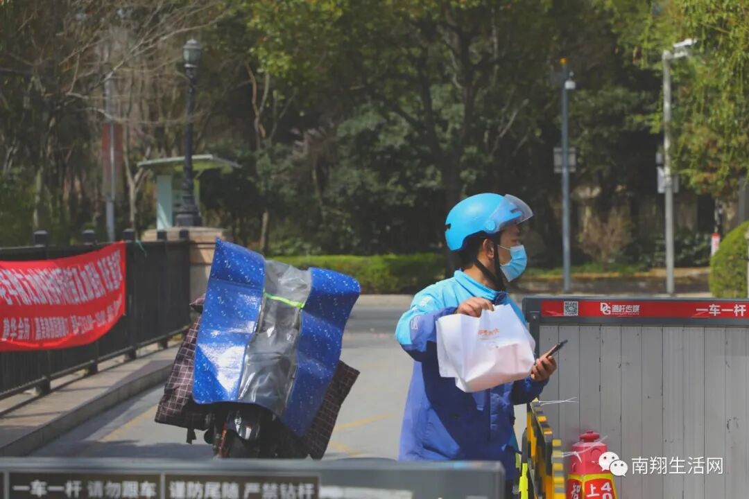 外卖小哥穿梭在南翔大街小巷。