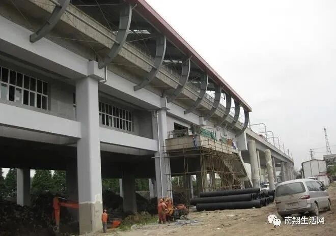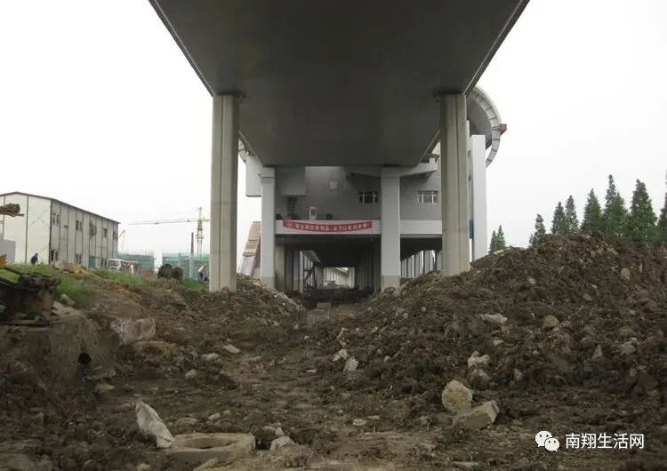 而远处就是还没有“穿外衣”的南翔地铁站。