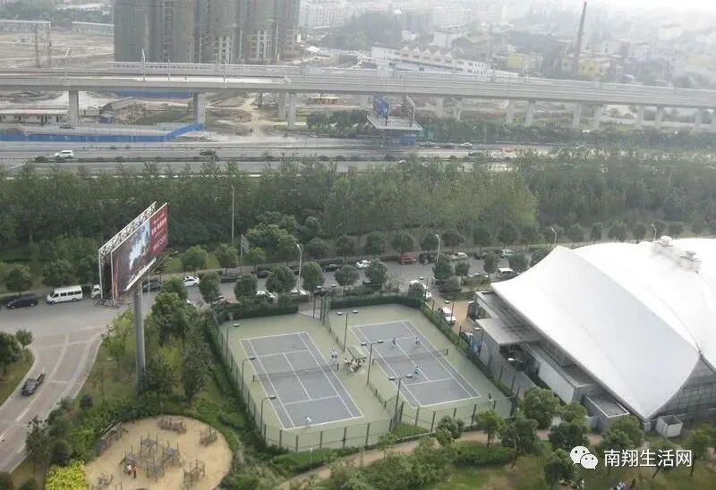 近处是金地赛事级的网球中心,当时有很多名人来此打比赛。