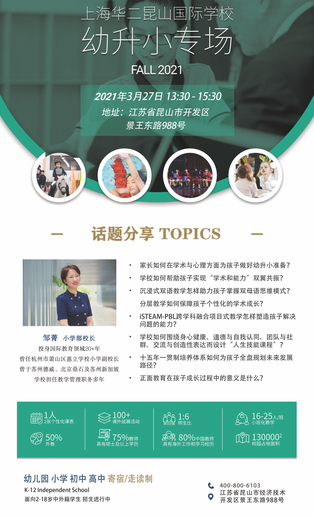 上海华二昆山国际学校 幼升小&小升初 校长见面专场