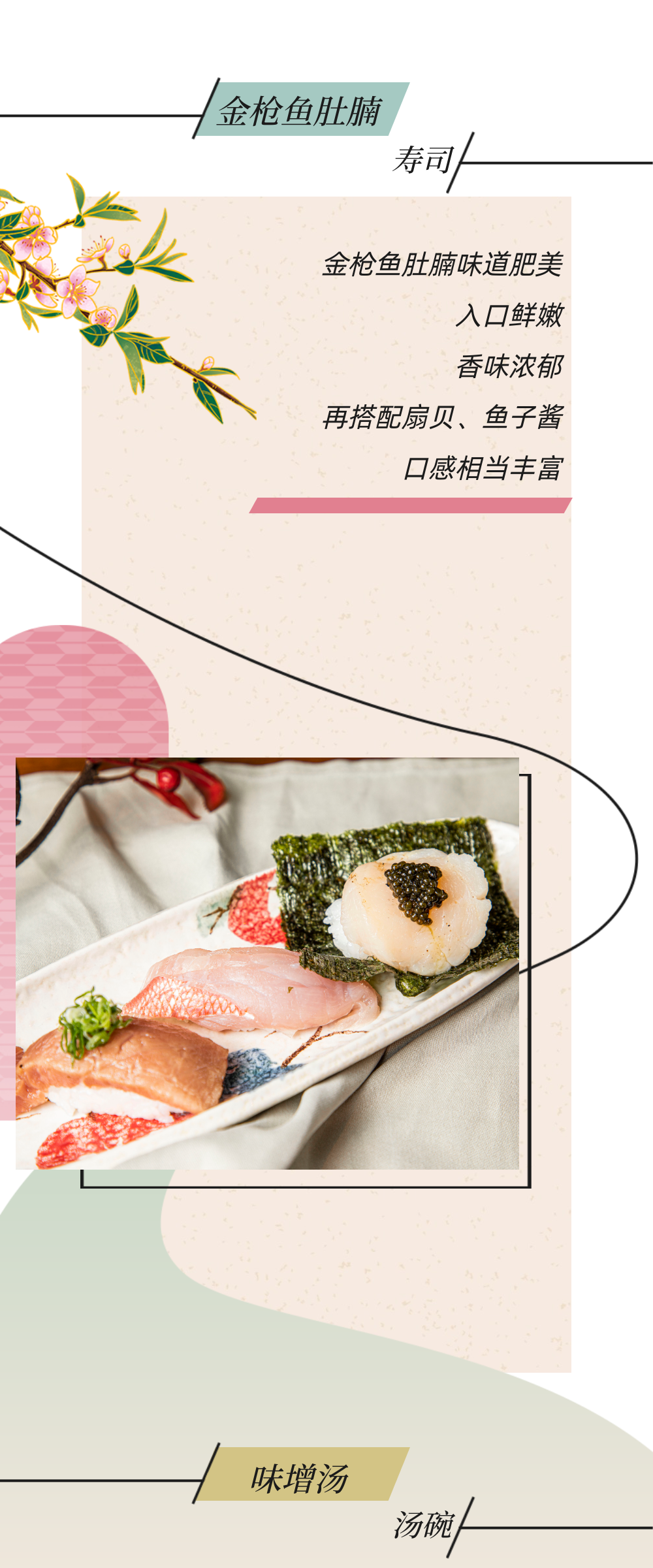 清酒是日式料理的绝佳搭配~开鱼仪式上也展示了日本高品质的清酒供宾客品鉴。日本清酒味道清冽甘甜,细腻柔和,爱吃日料的食客们绝对要感受下日本清酒的魅力。