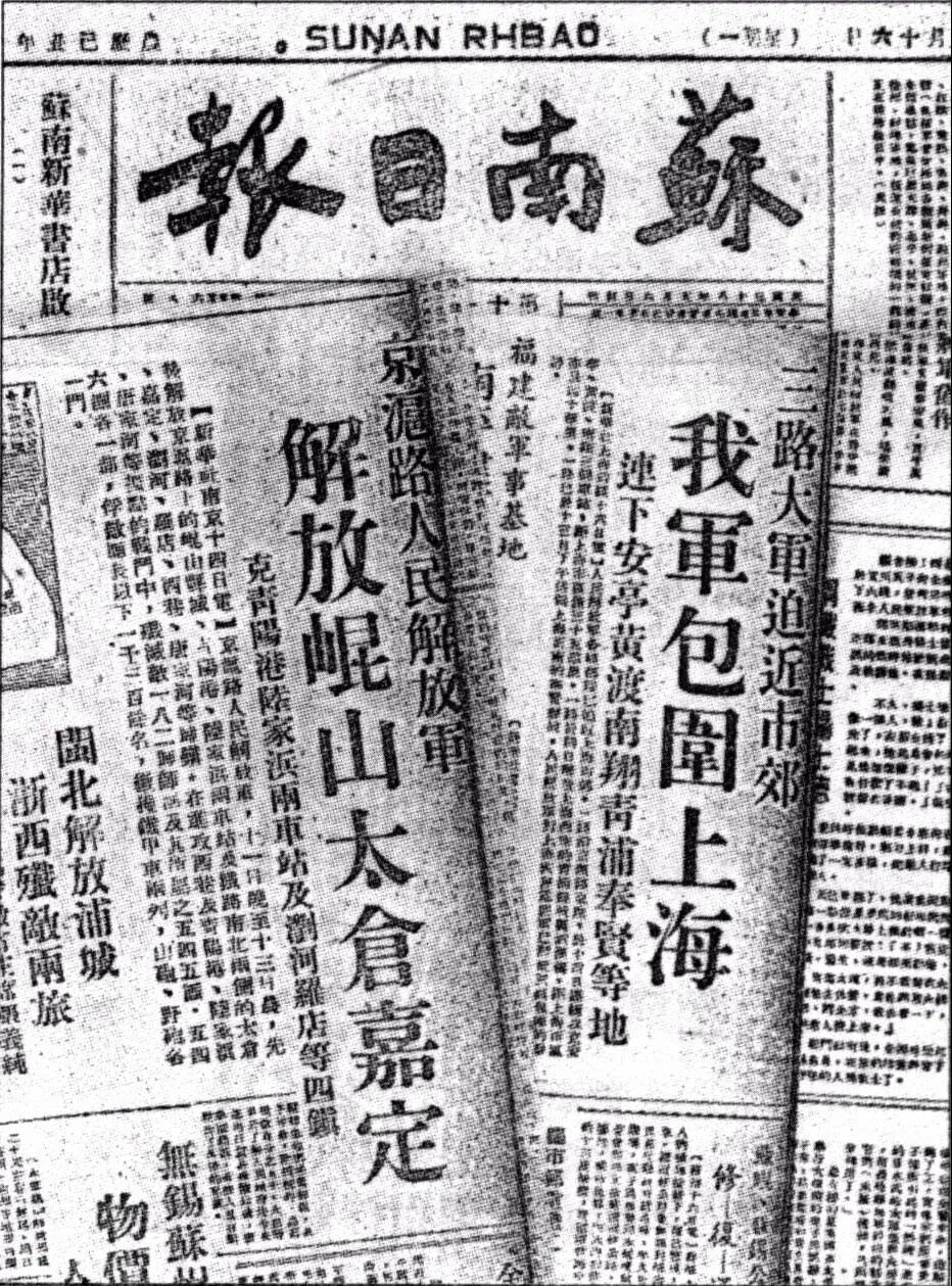 1949年5月13日,嘉定解放,16日,创刊不久的《苏南日报》报道这一喜讯。