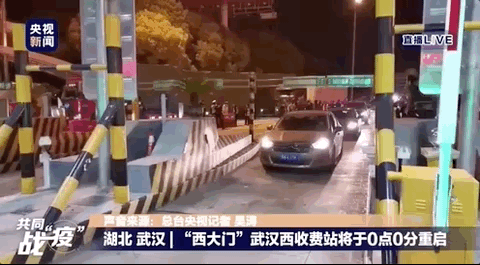 在武汉西收费站零点钟声一响通道打开车辆陆续离开武汉