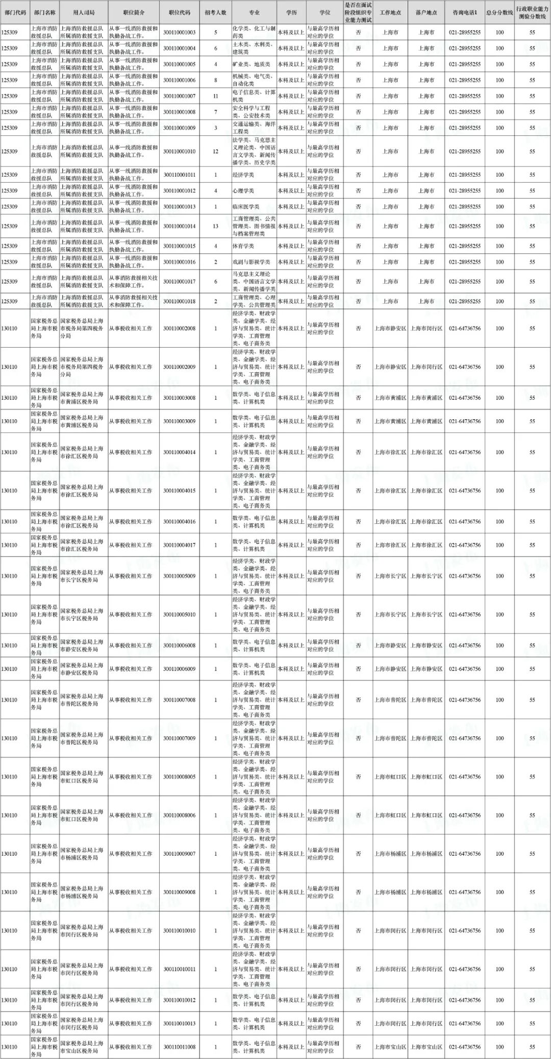 中央机关及其直属机构2020年度考试录用公务员面试工作已基本完成。国家公务员局说,目前有部分职位空缺,需调剂补充人员。申请调剂的人员公共科目笔试成绩应同时达到原报考职位的最低合格分数线和拟调剂职位的最低合格分数线,并符合相关岗位要求。7月28日8:00至7月30日18:00,报考人员可使用报名时的用户名和密码登录http://bm.scs.gov.cn/kl2020,填报相关信息。工作地点在上海的岗位共153人。详见↓