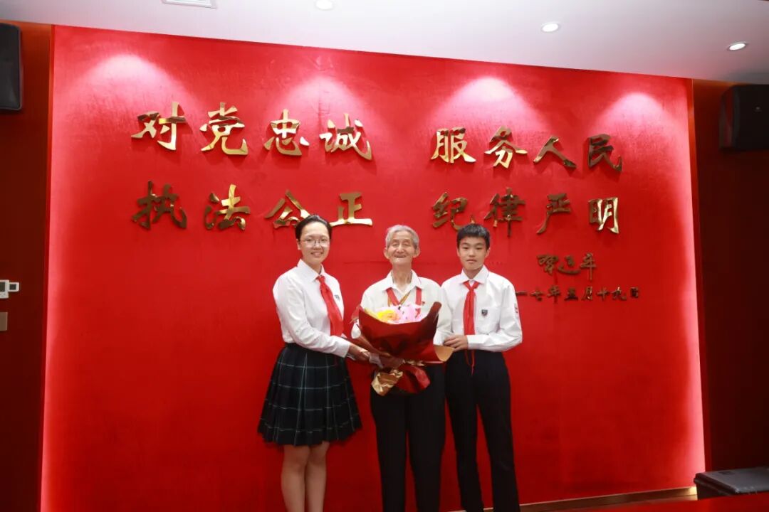 最后,少先队员为王根桃献上一束鲜花,
