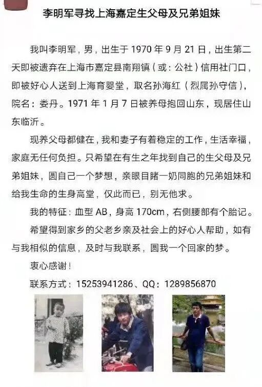 文末,小编附上一则寻亲启示: