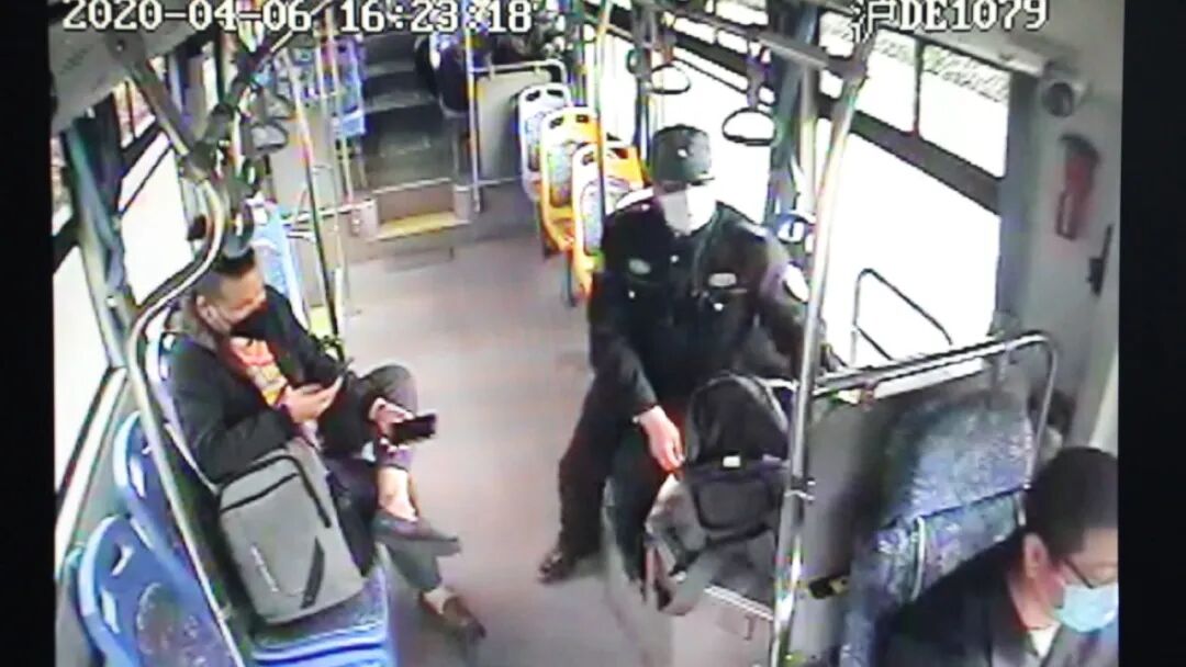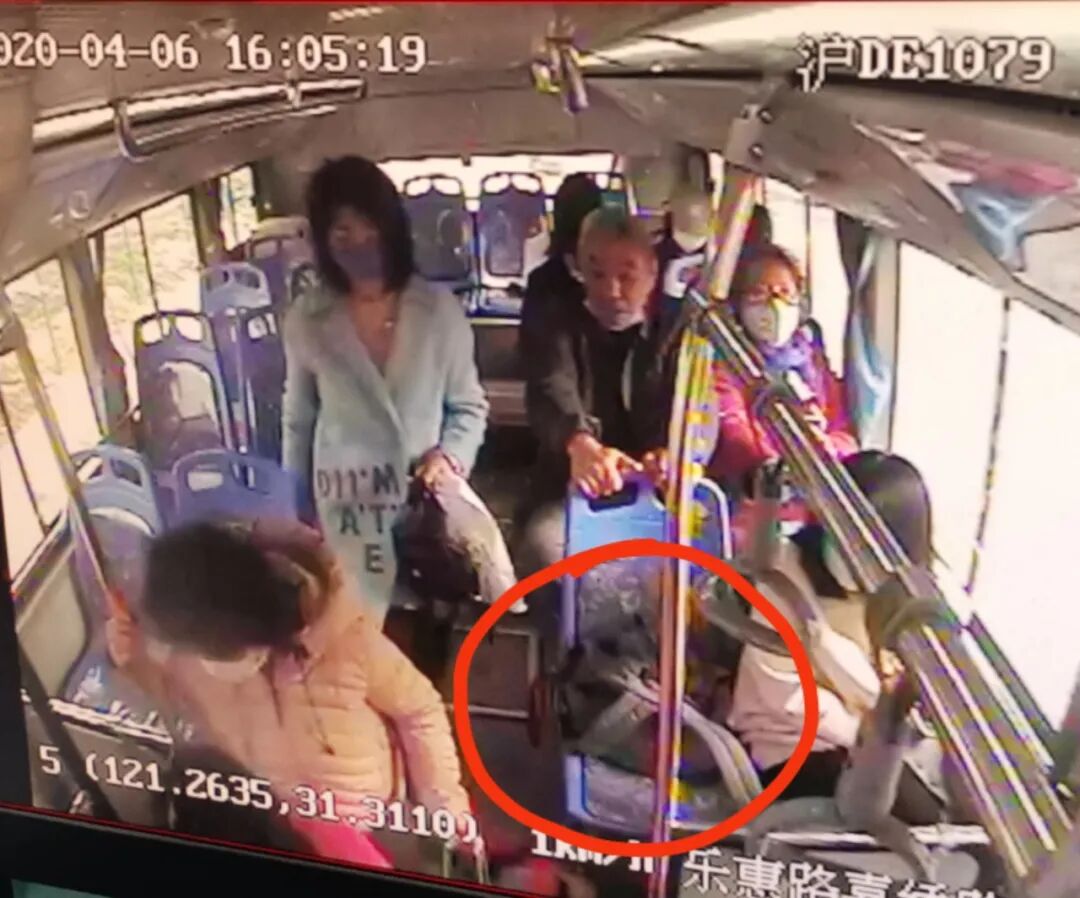 公共视频画面显示,昨天(4月6日)下午3点50分左右,一辆嘉定52路行驶至沪宜公路德华路停靠,身穿玫红色外套的李阿姨背着咖啡色的双肩包上了车。坐下后,李阿姨把包拿了下来,“包背在身上太重了,我就索性把它放到座位上。”