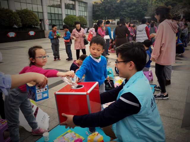 小朋友们为帮助“星星的孩子”将义卖所得进行募捐