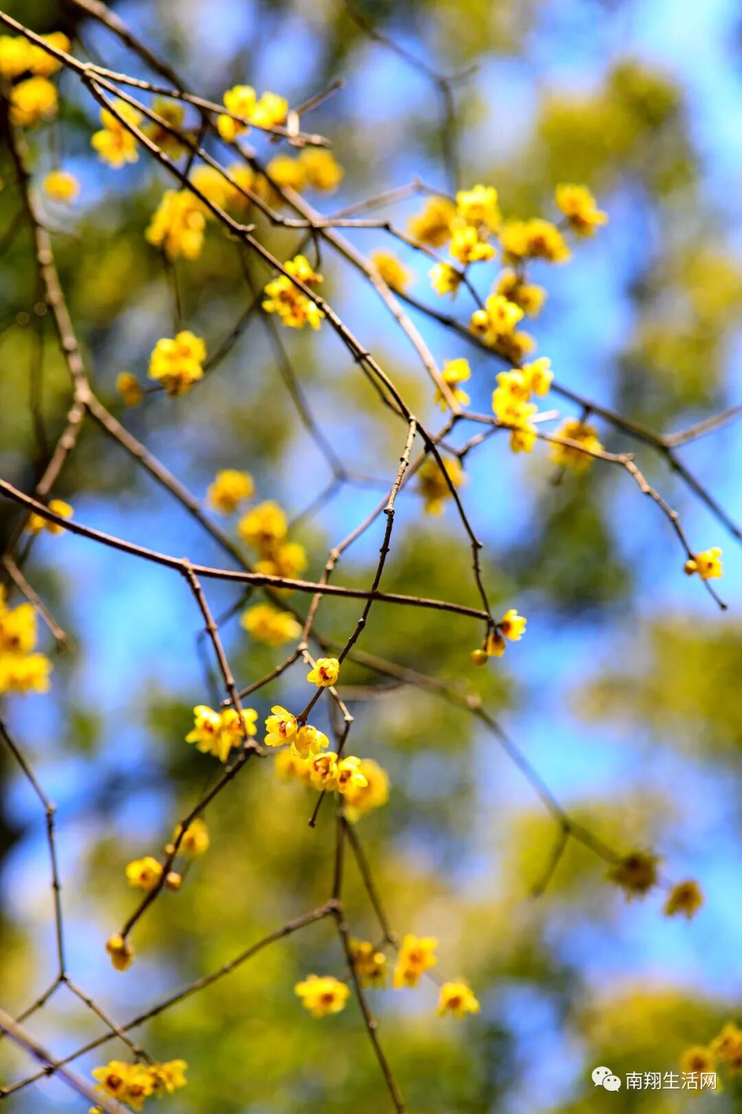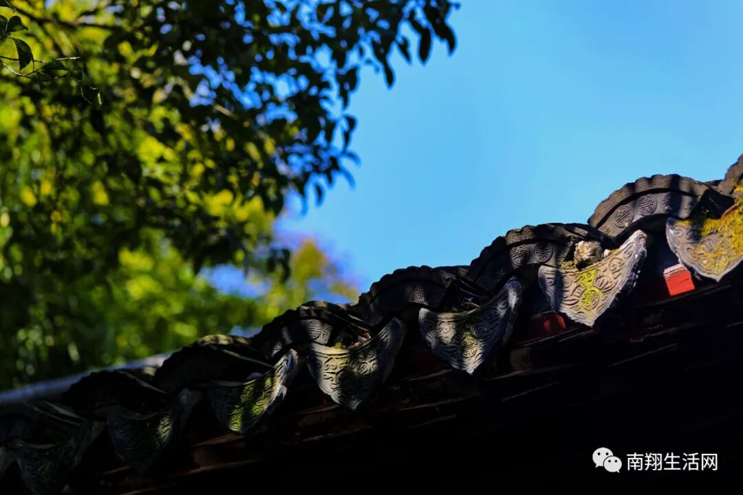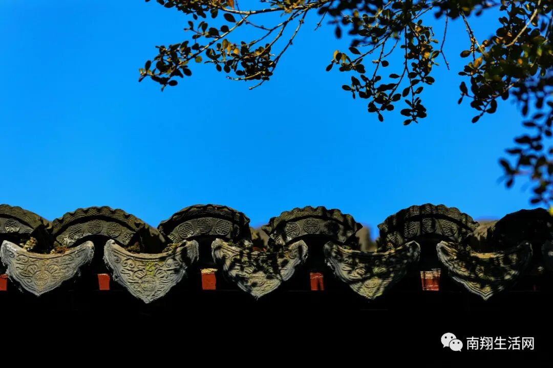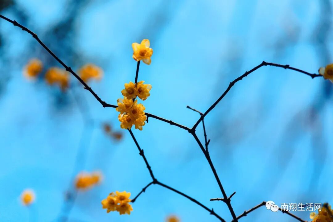 腊梅还没有凋谢,碧蓝天宇下,与飞檐下的滴水瓦共融成趣。