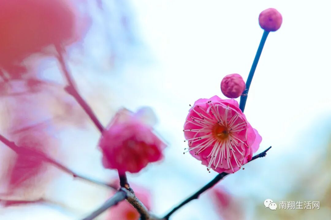 粉梅是秋霞圃的特色,粉色很正。粉嫩娇柔,如同遇见心上人时低头的害羞,这是春天给你的暧昧。