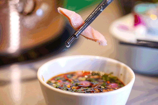 涮完的肥牛愈发诱人,蘸上调料几块肉一起送入口中,口感真的有被震撼到,无比鲜嫩。
