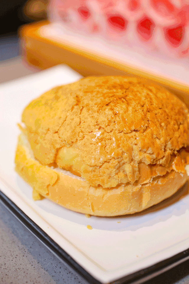 热热的菠萝包加上黄金搭档“黄油”,酥皮酥心,一口难忘。