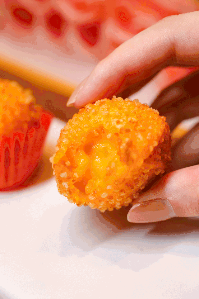 小小的麻球上桌看起来平平无奇,一口咬下去里面竟然是椰汁西米露,椰汁中和了麻球的油腻,一口一个超好味。