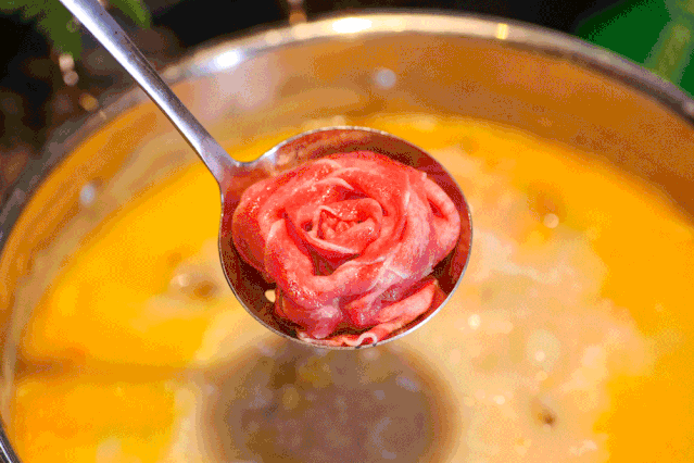 一整朵牛舌花下去,涮个10秒就能捞起来啦,千万盯住你的花花,不然就老啦~