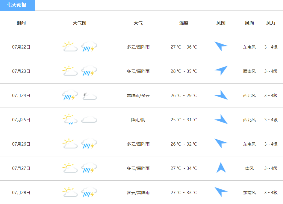 嘉定今天多云为主,在阳光和副热带高压共同作用下,最高气温可达35-36℃。由于午后对流旺盛,局地有出现阵雨或雷雨的可能,所以还是要关注临近预报,随身带伞,防晒防雨两不误。   受冷空气影响, 23-24日会有一次降水过程,25日开始,以多云天气为主,但是夏季午后不稳定能量较高,多局地雷阵雨天气,提醒大家注意防范!近期气温比较高,还是要做好防暑降温工作。