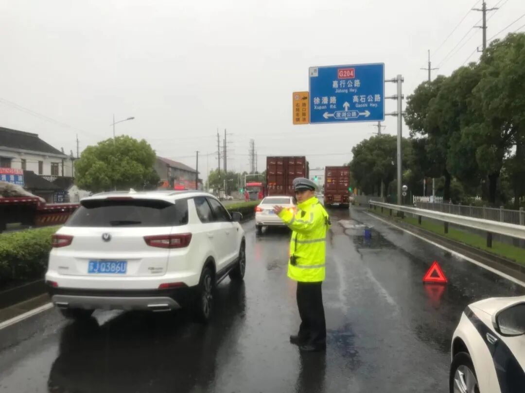 ▲ 外冈所民警在嘉松公路G1503现场指挥疏导交通