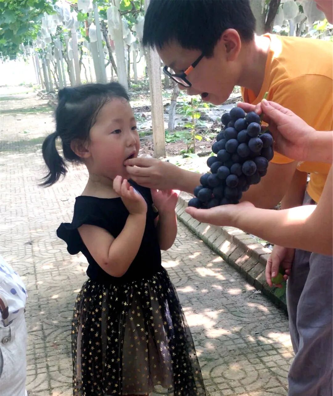 在父母的协助下,孩子们小心翼翼地将自己心仪的葡萄剪下,时不时地送几颗葡萄进嘴里。很快,孩子们手中的小箱子变得满满当当。