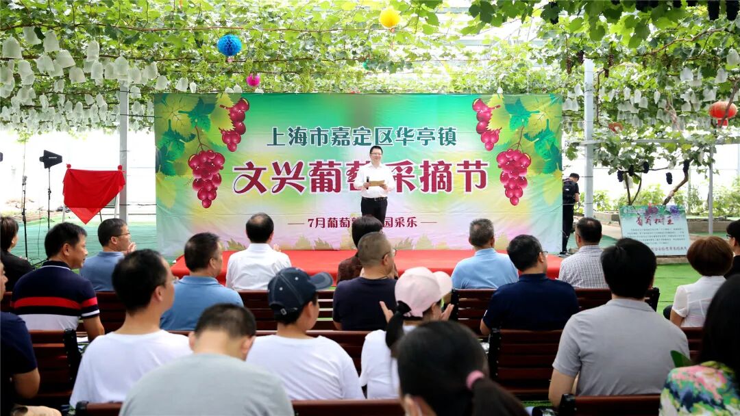7月12日上午,2020年上海嘉定文兴葡萄采摘节在华亭启幕,同时标志着今年华亭地产葡萄正式上市。