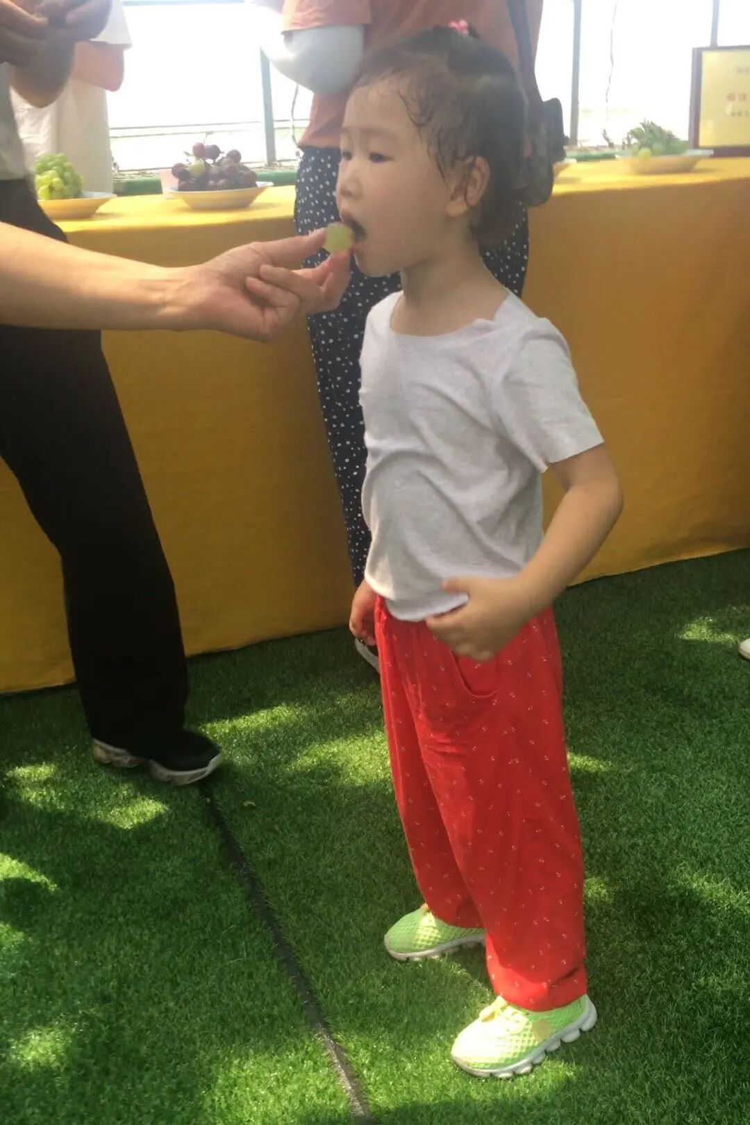 尽管今天嘉定迎来了首个高温日,但家长和孩子们的热情却丝毫没有减少,当看到葡萄架上挂满了沉甸甸的葡萄串,孩子们都异常兴奋。