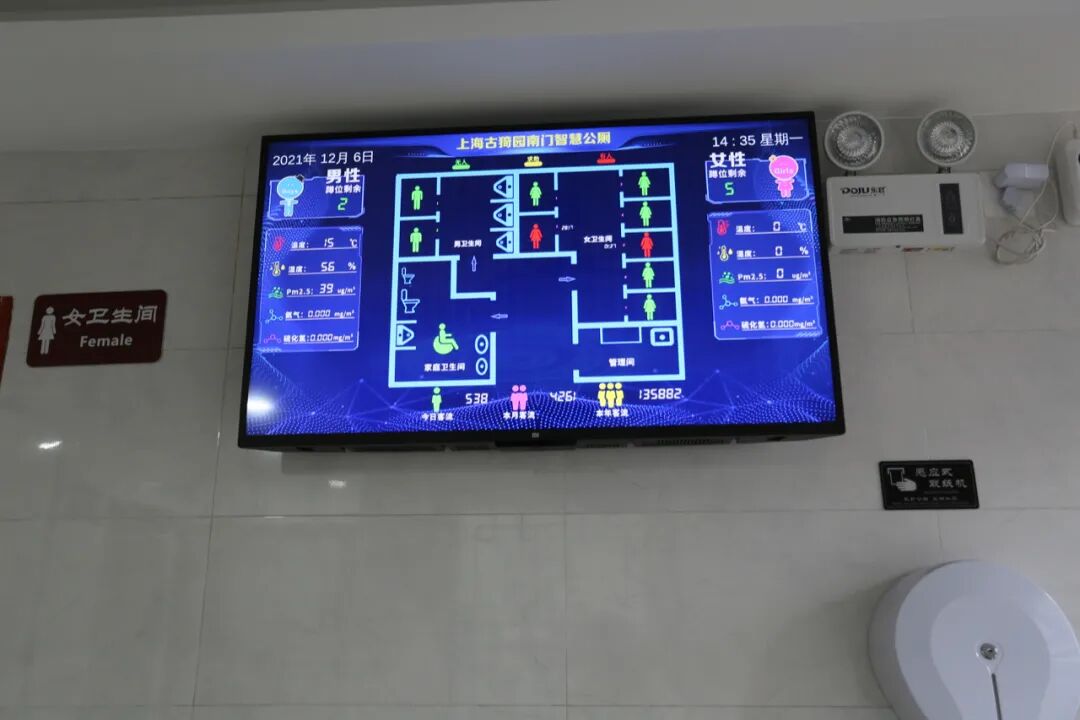 采用现代智能控制、传感传导等技术,将厕所布局、厕位使用情况、实时空气质量等数据集中显示在入口显示屏上,引导市民游客高效、有序如厕,同时便于保洁人员精准打扫。