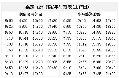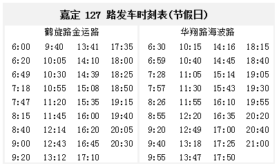 自2022年3月12日起,嘉定127路调整为工作日、节假日行车时刻表,调整后发车时刻表如下: