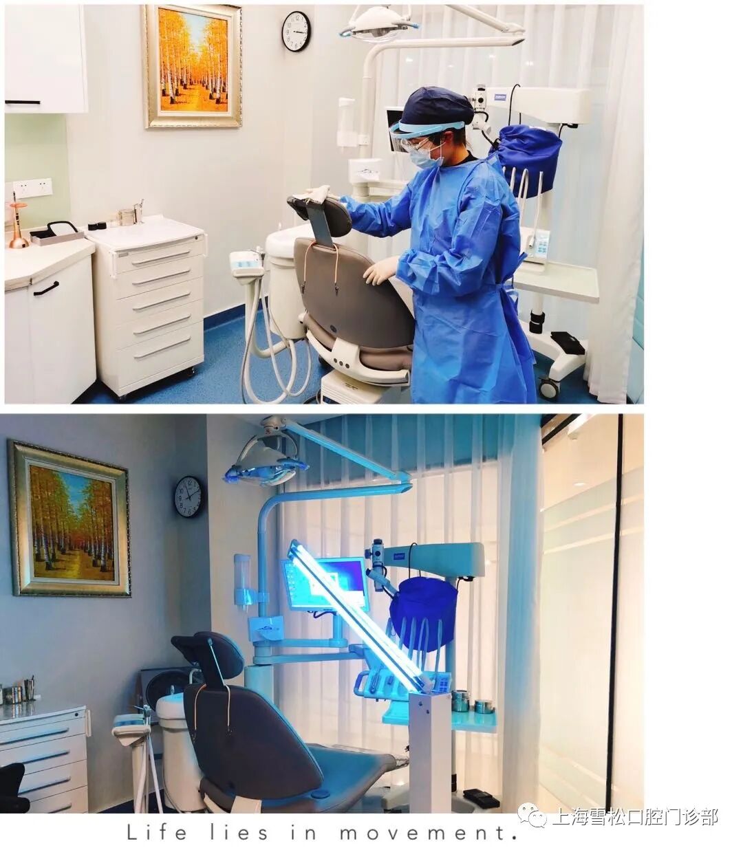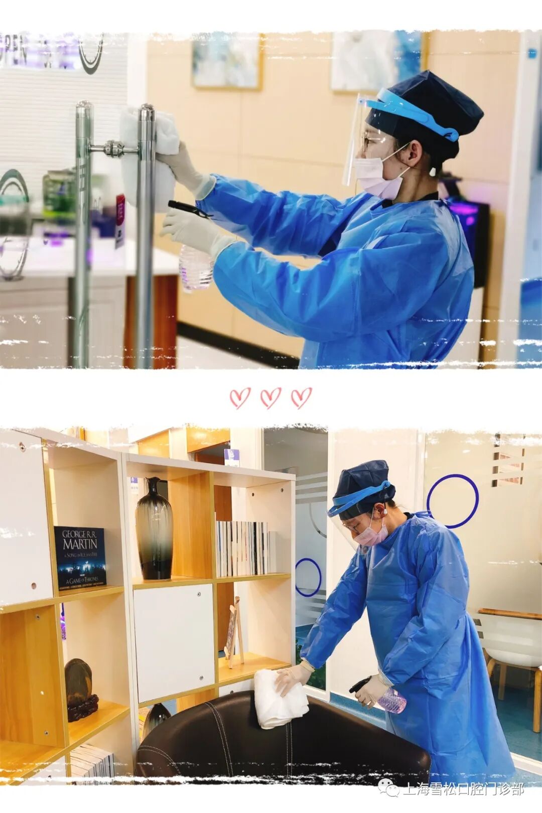 还有这些细节:常规牙椅贴膜,电脑键盘,抽屉把手等凡是能覆盖的尽量覆盖,减少桌面物品摆放,严禁零食水杯带入诊室,用500m/L含氯消毒剂由清洁到污染擦拭,且每天中午增加一次紫外线消毒,严格执行消毒隔离措施。