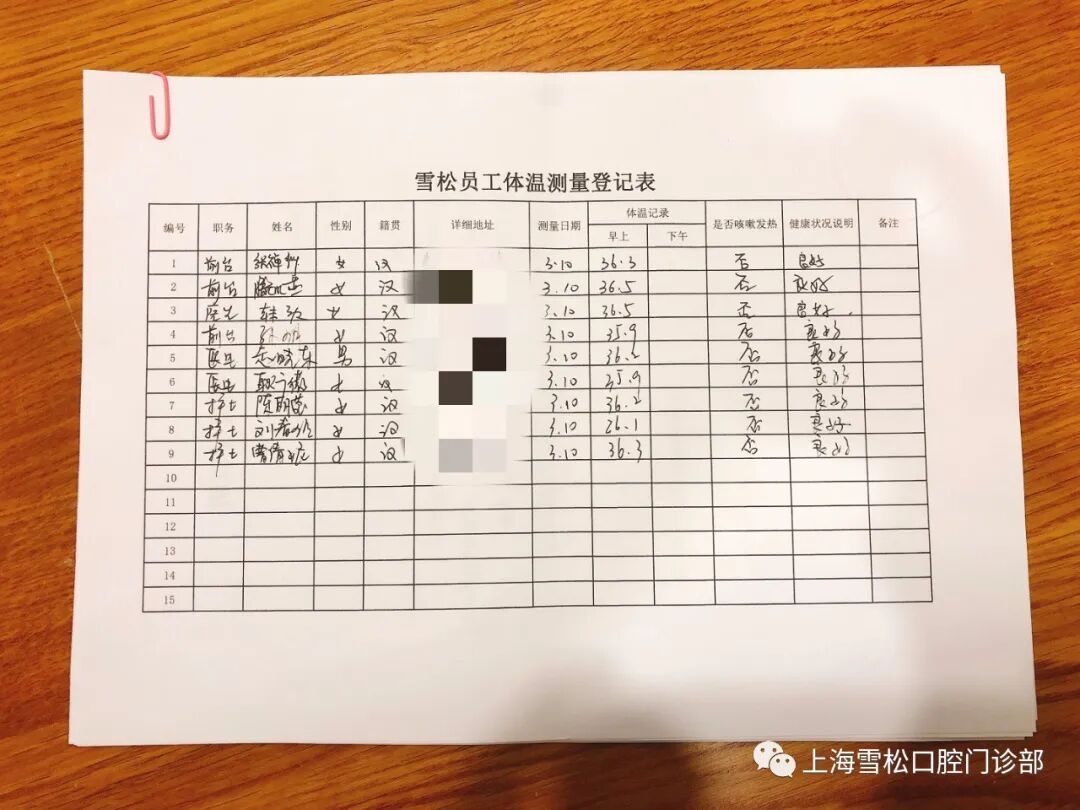 最关键的是:雪松确保全体人员14天内未离开上海,且身体健康。营业期间内,员工每天上班前进行测量体温并登记,严格检测体温于正常范围内。