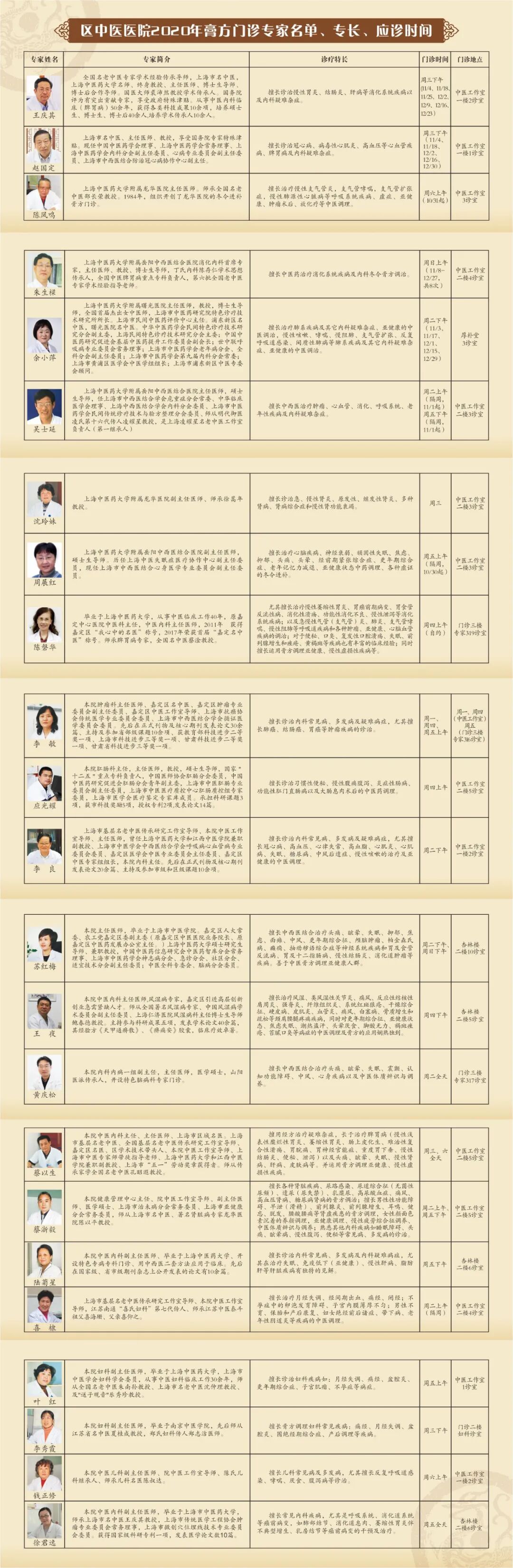 3、安亭医院膏方门诊时间:10月20日起