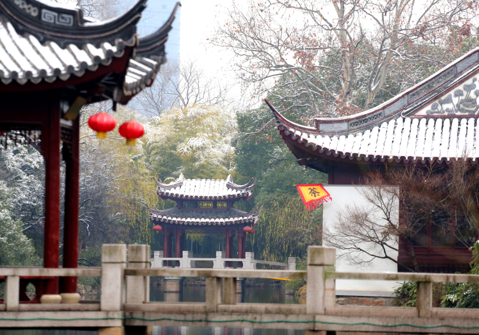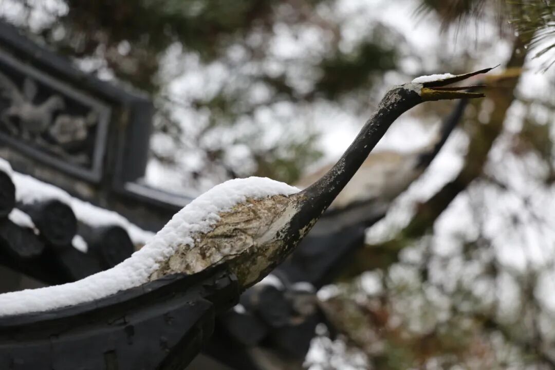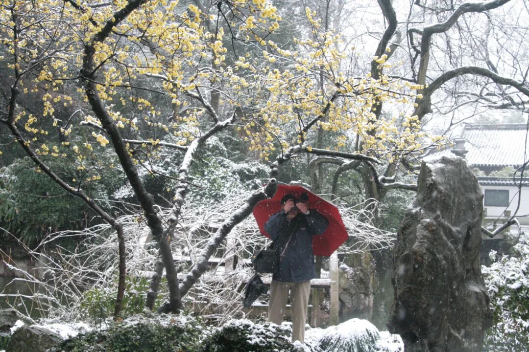 来到南翔近20年,等到雪的次数不多,但十多年前南翔的那场大雪令人难忘。那场雪看似突如其来,实则像是蓄谋已久,因为那场雪太大了,大的不像南方的雪,飘飘洒洒,南翔一夜之间梦回槎溪。早上雪还没停,雀跃奔进古猗园,雪像一道飘动的帘,笼着那些翠绿的竹,朱红的窗,大红的灯笼,墨色的屋檐,不经意间就都入了画。