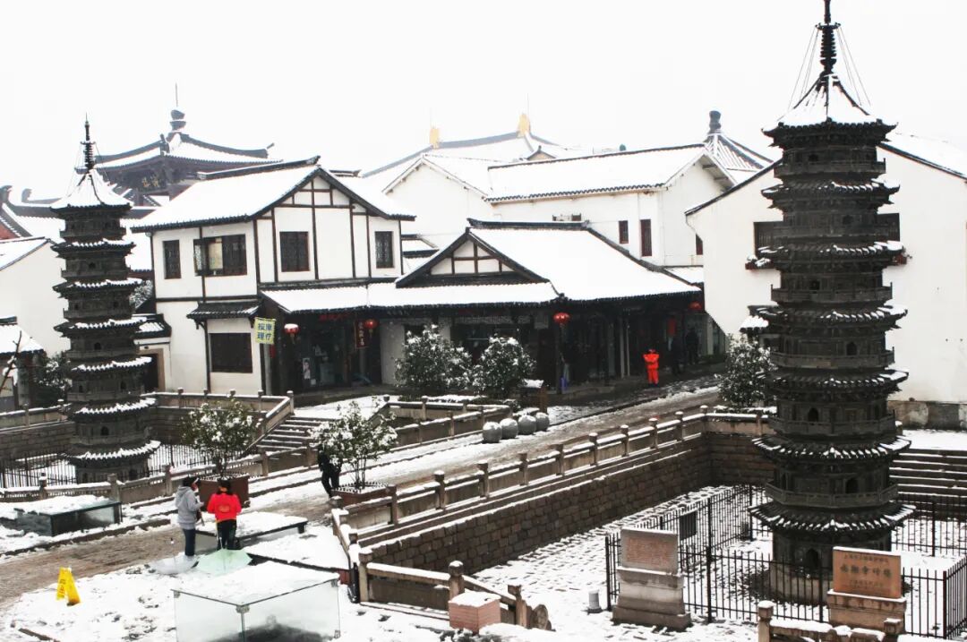 自古以来,南翔的雪就是浪漫的。《南翔镇志》中记载:三槎浦地濒旷野,雪后泛舟,弥望如玉。此即为南翔十八景之一的“三槎霁雪”。试想,一场大雪过后,三槎尽白,南翔天地间银装素裹。古人总是浪漫风雅的,顾不上天寒地冻,三五知己相约小酌暖身,微醺之中雪后泛舟槎上。我猜此时应是雪后初晴,在小舟上临风远眺,两岸一望无际洁白如玉,应有冬日暖阳为远处白雪覆盖的树木镶上了一道金边,寒鸦飞过,碎雪迎着阳光簌簌飘落。