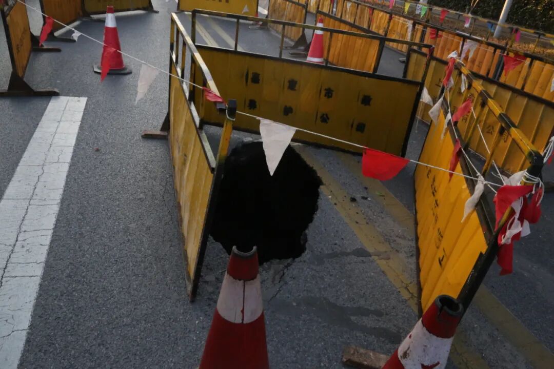 据悉,相关部门经过现场勘查,初步判断,地面塌陷是道路下方污水管道破裂、污水冲刷路基导致。施工方表示,将结合实际情况,制定方案,尽快修复路面。