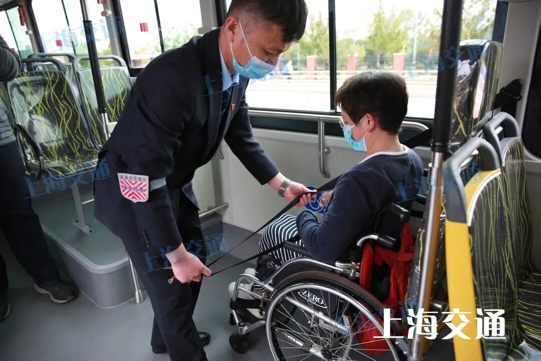 在现场看到,站台上规范停靠着两辆“白金刚”,有乘坐轮椅的乘客提出乘车需求;驾驶员询问乘客目的地后,启动车辆“侧跪”功能,随后拔除车钥匙下车;在中门手动打开轮椅导板(即低地板)至上街沿平面,驾驶员推动轮椅协助乘客上车;上车后在“无障碍区域”面朝车后固定轮椅,协助乘客绑带安全带;随后模拟乘客到达目的地后,驾驶员重复之前的动作,再次侧倾、打开轮椅导板协助乘客下车。