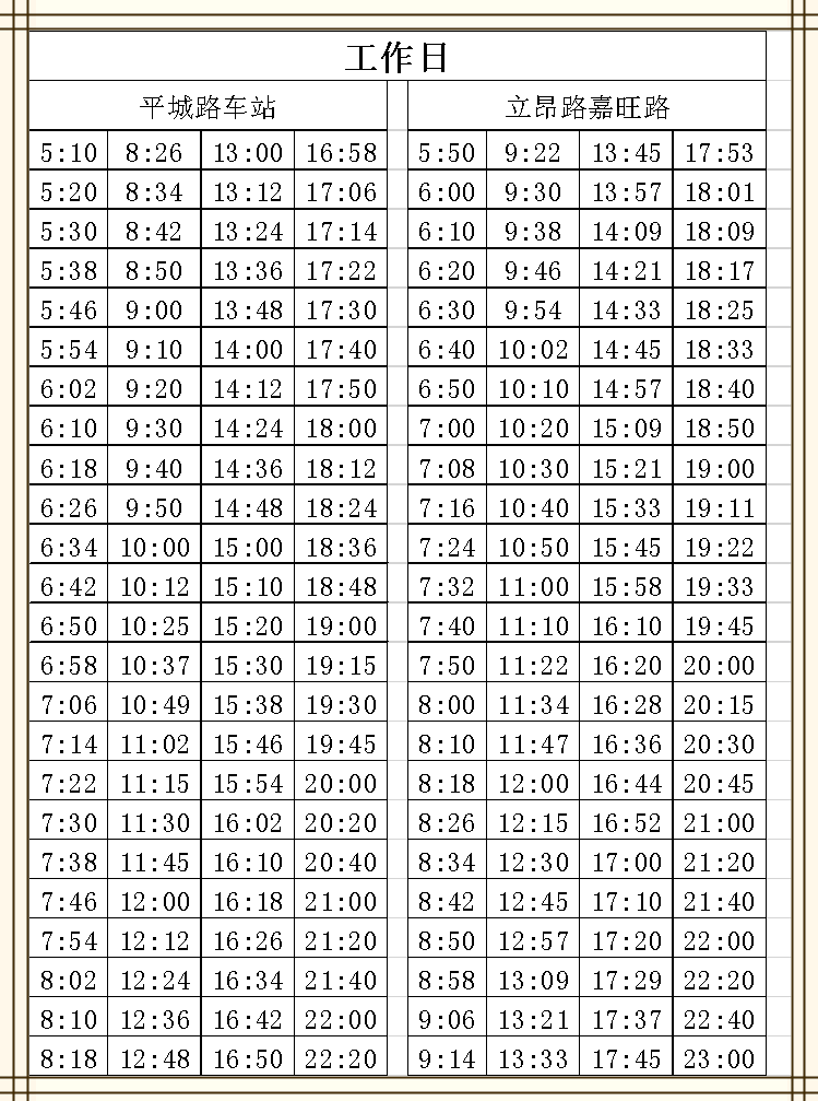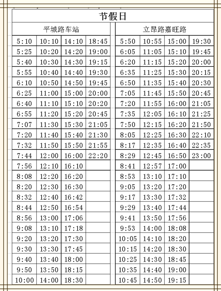 平城路车站5:10-22:20