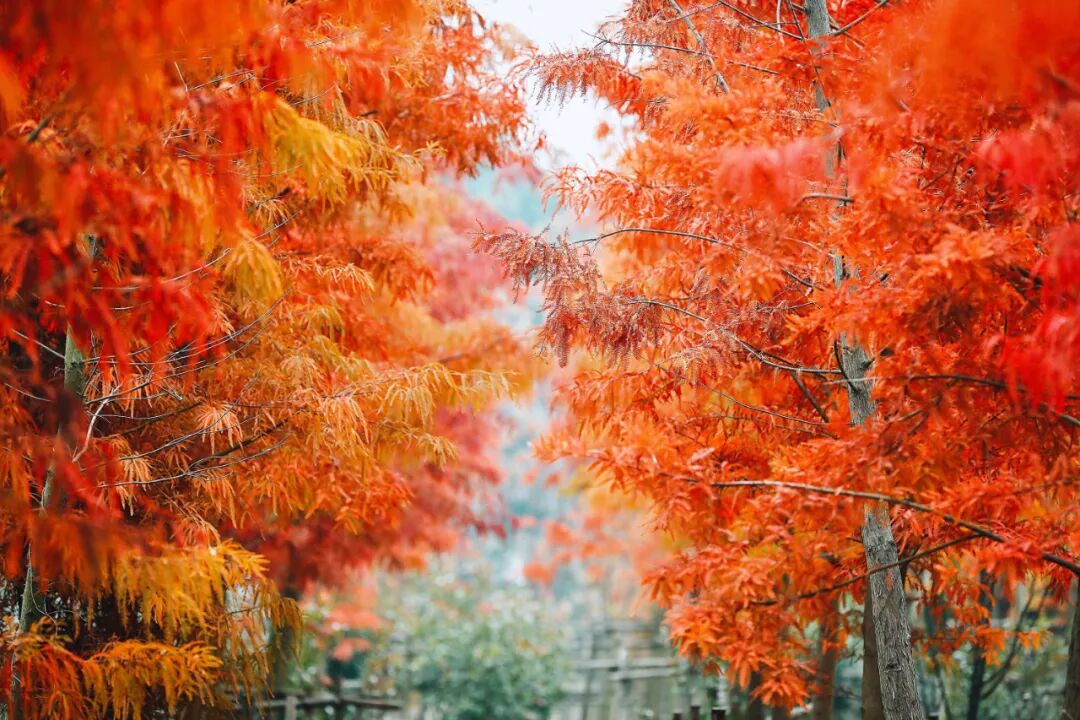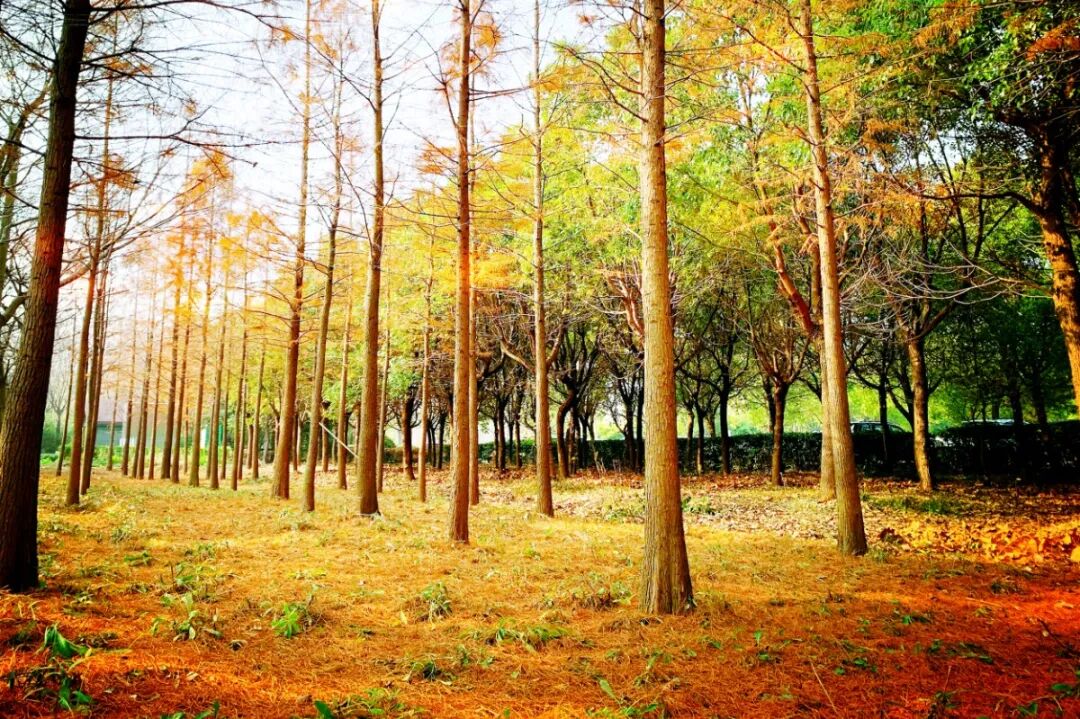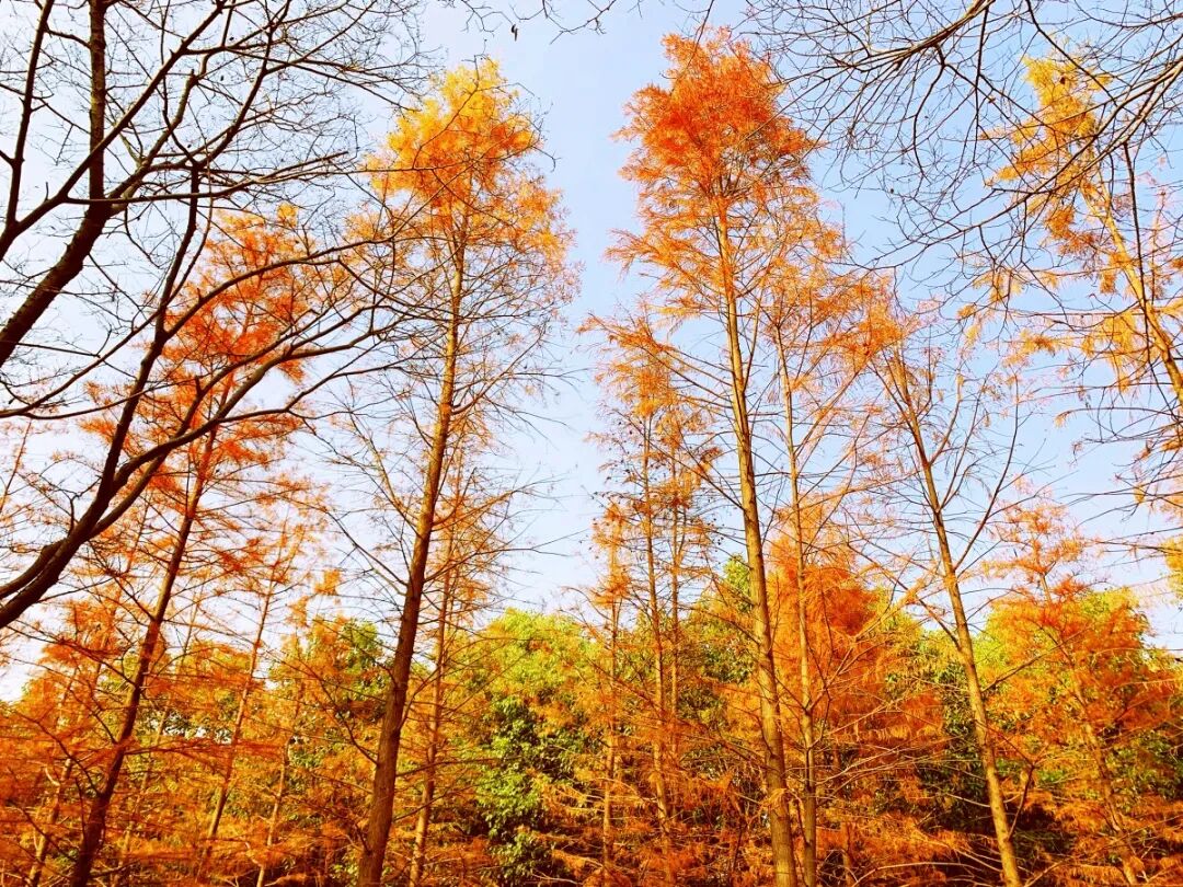 “藏”在外冈这里的水杉林,眼下正是最美的时候。挺拔的水杉树一改平日的葱郁,完成翠绿、金黄、橘红的渐变。身处其中,那份饱满的诗意,总让人浮想联翩。