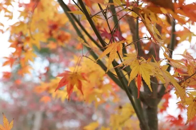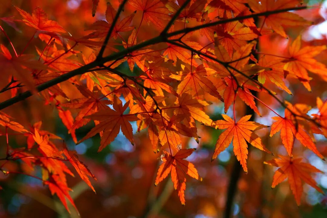鸡爪槭的样子小巧玲珑,宛如一只只鸡爪降落枝头。不同于红枫的艳红、羽毛枫的明黄,鸡爪槭色调更温和,为宁静的古猗园增添了一丝暖意。