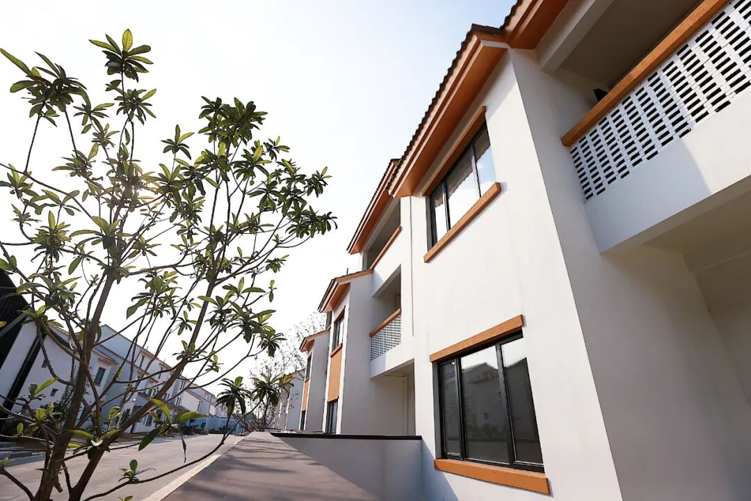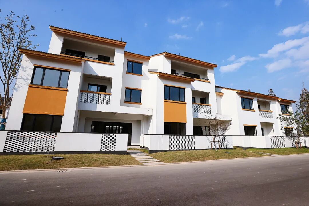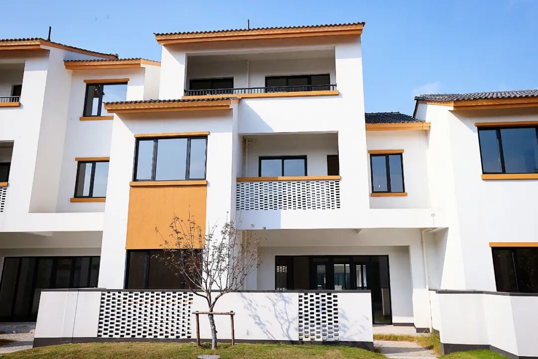 与普通联排别墅不同,这些别墅在结构设计上增添了“乡村特色”:建设方充分考虑到村民居住习惯,将挑高设计为3.5米,使室内空间更开阔;每栋别墅前预留小院,并在房屋四周种植乔灌木;楼栋之间紧密相连形成公共区域,方便乡邻串门聊天。