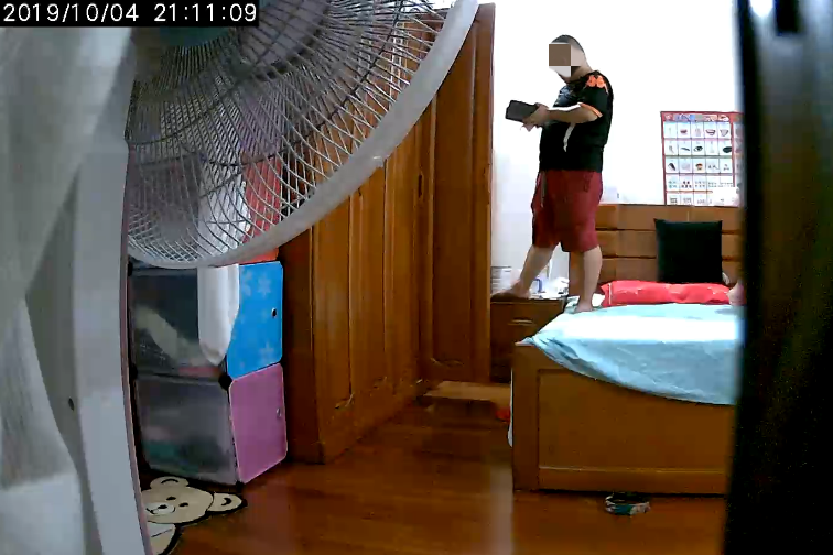 在这之后,林某陆陆续续在做一些兼职,但始终没有赚到钱,生活很是拮据。于是,他决定铤而走险,于2019年8月、9月、10月三次再次潜入孙先生家中,共盗窃1000余元人民币及一个银手镯,却不料,最后一次行窃过程被监控拍得清清楚楚。