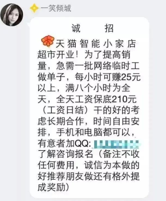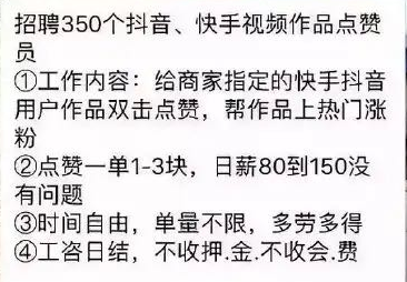 以下广告信息都是诈骗分子实施刷单诈骗的第一步,如果对这些内容感兴趣的话,你极可能将被刷单诈骗。