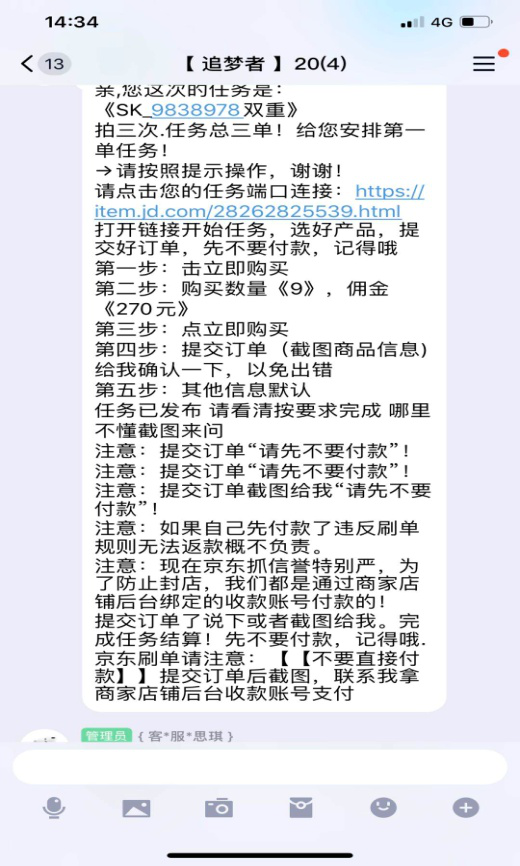 所谓的刷单,就是卖家雇佣“刷客”扮演顾客,用虚假的购物方式,帮助卖家提高商品销量和信用度的数据,并且填写虚假好评的行为。通过这种方式,商家可以在电商平台中因为销量数据高而占据较高的搜索排名,且可以通过刷出来的好评率获得潜在购买者的信任。然而,不少黑产从业者也悄悄盯上了这块领域,他们用高额回报作为诱饵,借鉴真实刷单的工作流程进行诈骗。