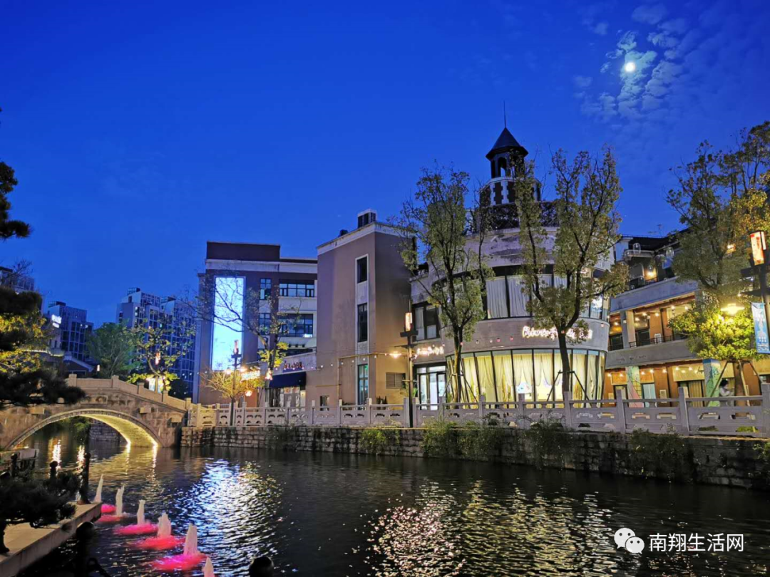星光璀璨下的西云河岸呈现出一派江南水乡特有风貌,沿河长廊、四角亭、金府、石桥流水、还有丝丝柳绿,江南夜韵正是夜风中的流动烟火。