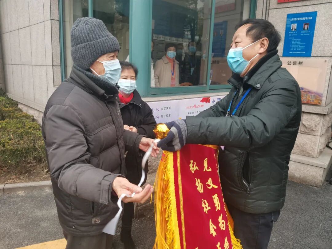 由于当天正值春季高考,韩湘辰同学不在学校,工会主席张万贵代为接受锦旗。