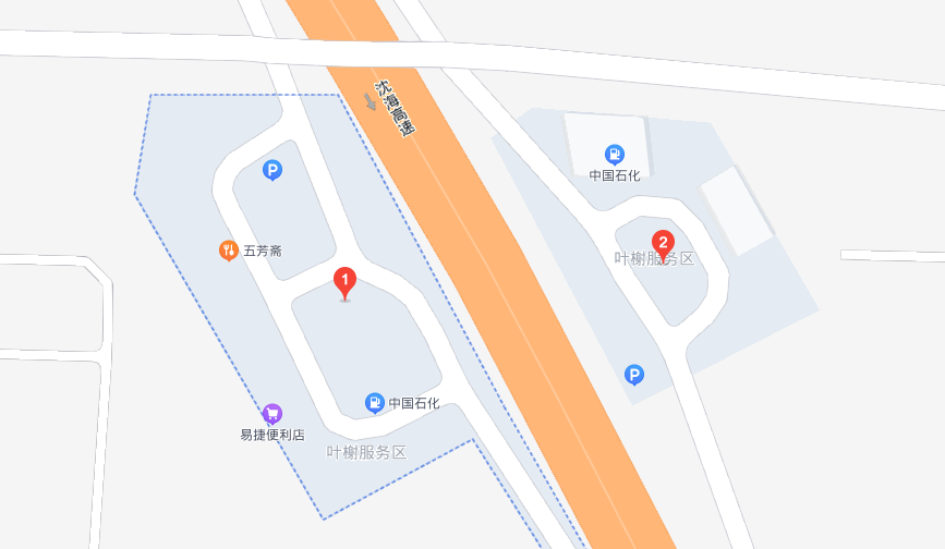 服务设施:卫生间、加油站、充电桩、超市、餐饮