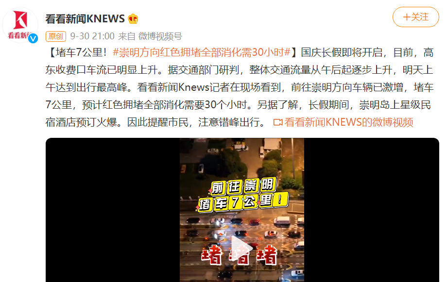 - 2021年的第276天 - 嘉定明日天气:小雨 29℃/23℃ 堵!堵!堵!嘉定人 这个国庆你出远门了吗?返程高峰已经开启! 你!准!备!好!了!吗!  南…