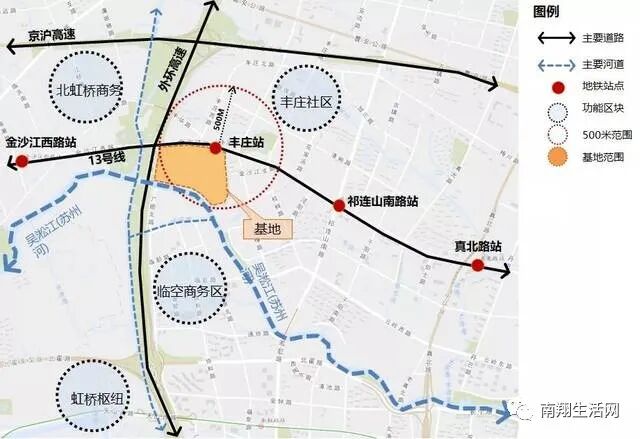 这里位于嘉定、长宁、普陀三区交界处,也是苏州河外环内的源头区域。交通非常方便,地铁13号线丰庄站就在地块北面。