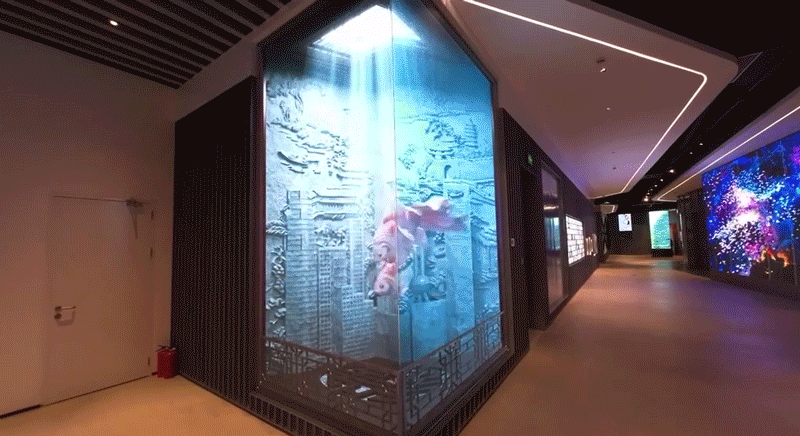 一进门是另一幅巨幅的NFT艺术作品,在正常的视野范围内几乎感受不到LED颗粒的存在,颜色也是相当的逼真绚丽。