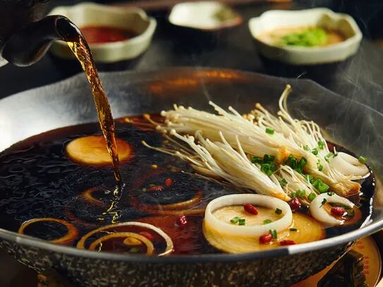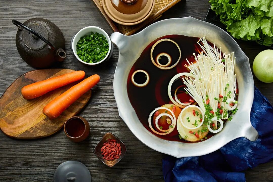 昆布柴鱼高汤、特调酱油、金针菇、洋葱