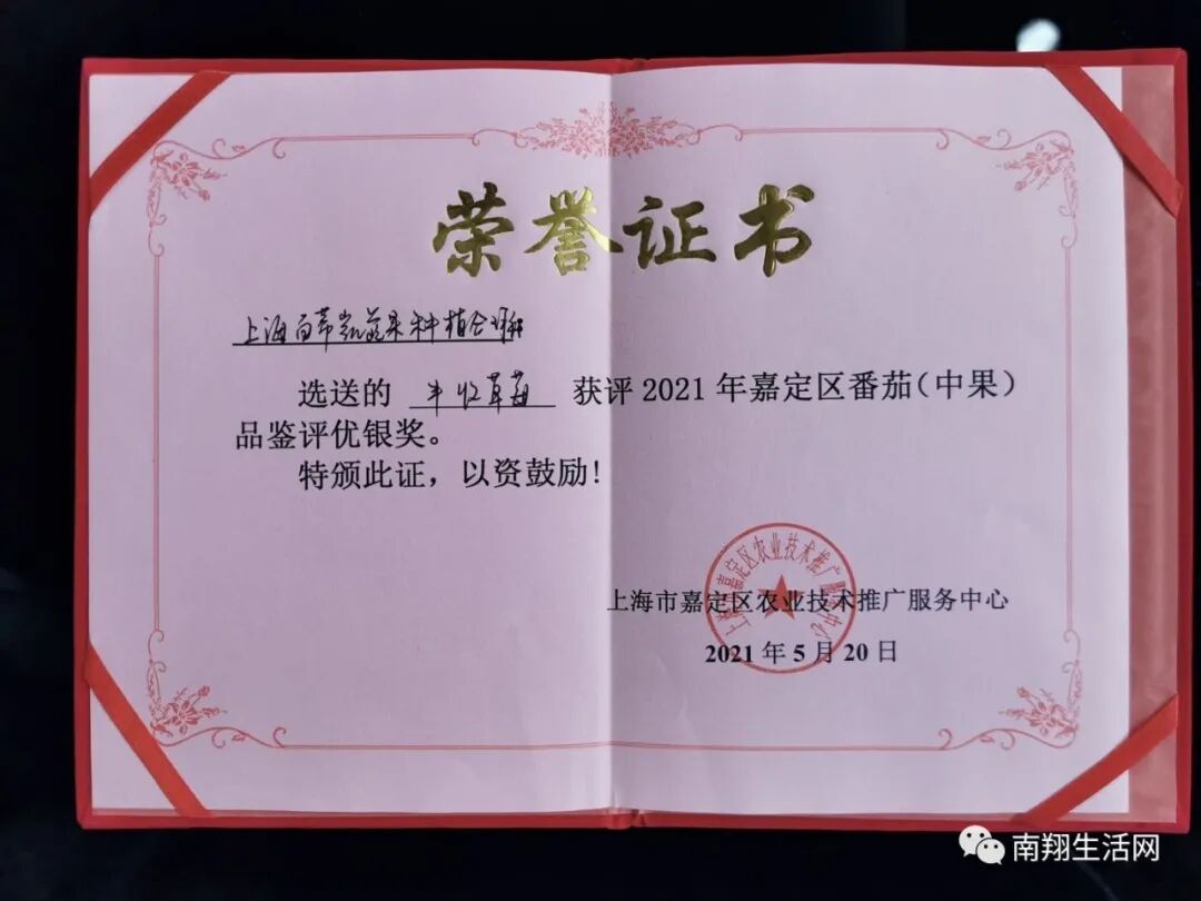 上海百蒂凯蔬果种植专业合作社的丰收草莓,获得本次番茄中果品鉴评优银奖!